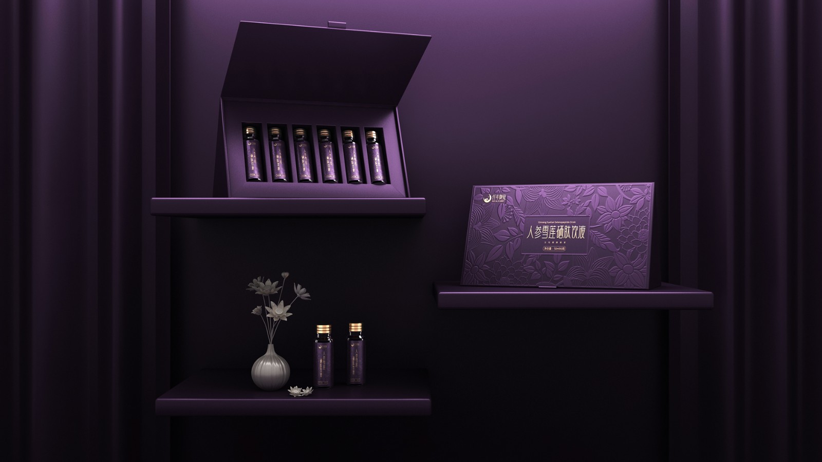 人參雪蓮硒肽飲液品牌包裝創(chuàng)意思路: