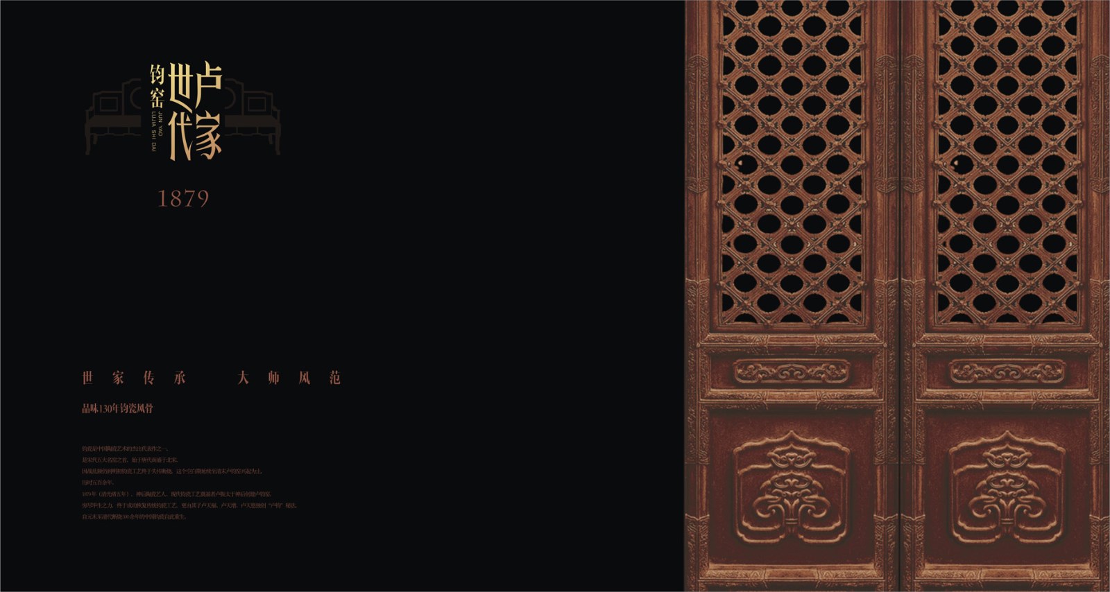 市面上鈞瓷品牌多數(shù)是印章的形式,只能反映是個傳統(tǒng)的產(chǎn)品無法再過多文化解讀而盧家鈞瓷,具有復(fù)燒鈞瓷的行業(yè)地位,又有一脈相承的特征,是其它品牌無法比擬的文化高地我們將這種傳承深化挖掘在品牌中滲透進(jìn)“晚清、民國、世家大宅、名門望族”氣質(zhì)特征彰顯尊貴地位的同時能使整個品牌有一種文化帶入感。