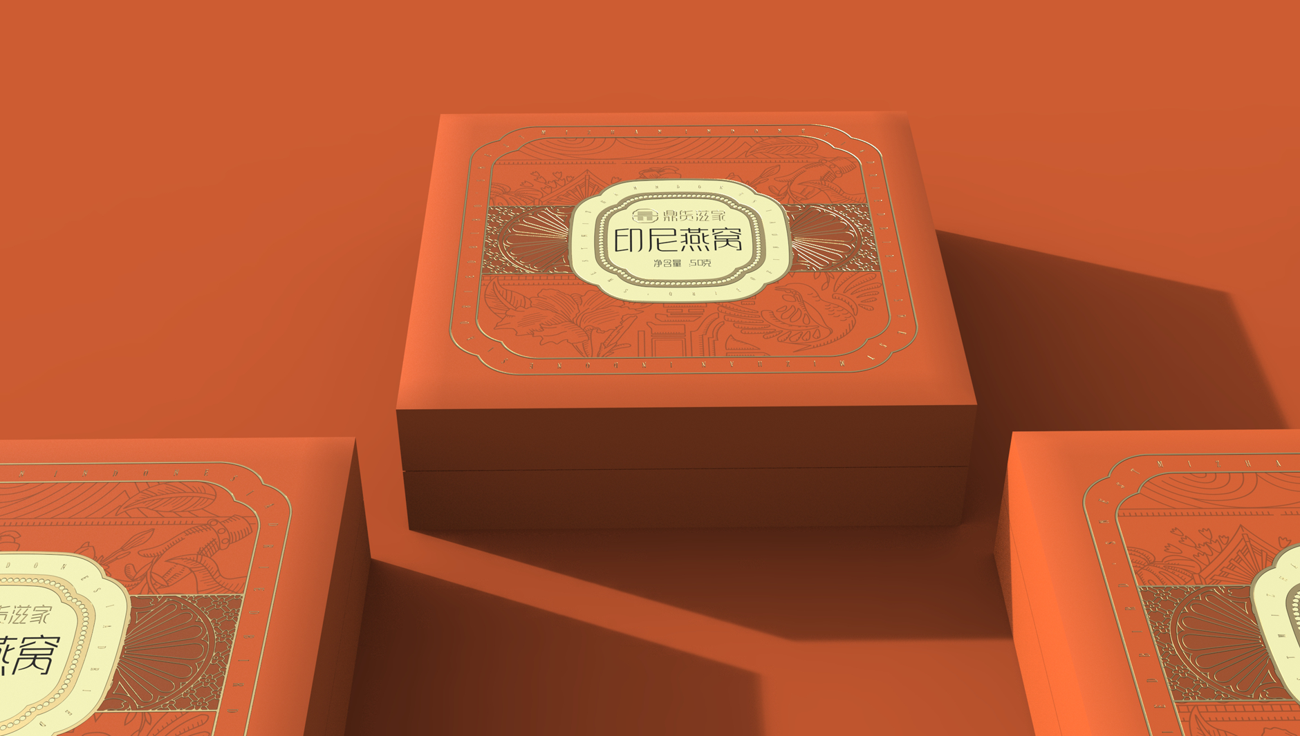 給產(chǎn)品線一抹亮色提振視覺,同時(shí),融入包容了南亞特征的圖案(印尼干燕窩,產(chǎn)品具有南亞的屬性);