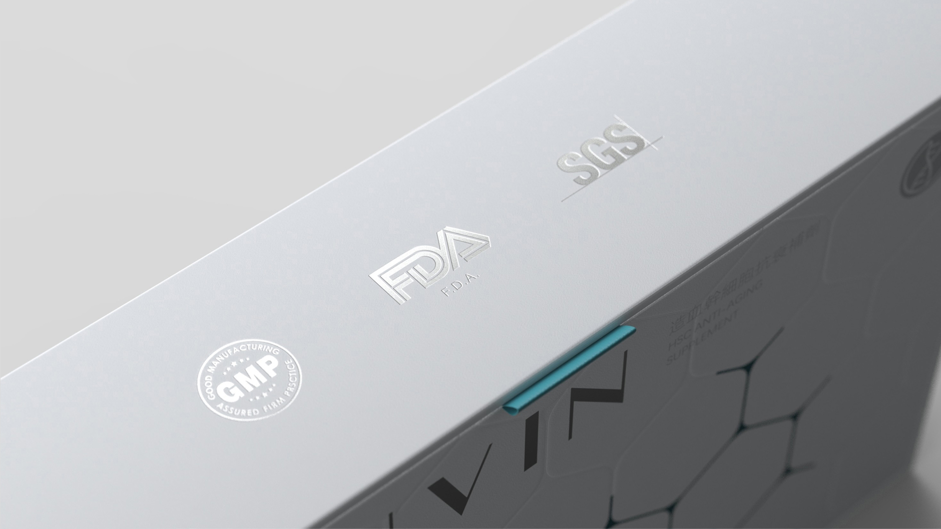 在側(cè)面以燙銀工藝放置權(quán)威認證標