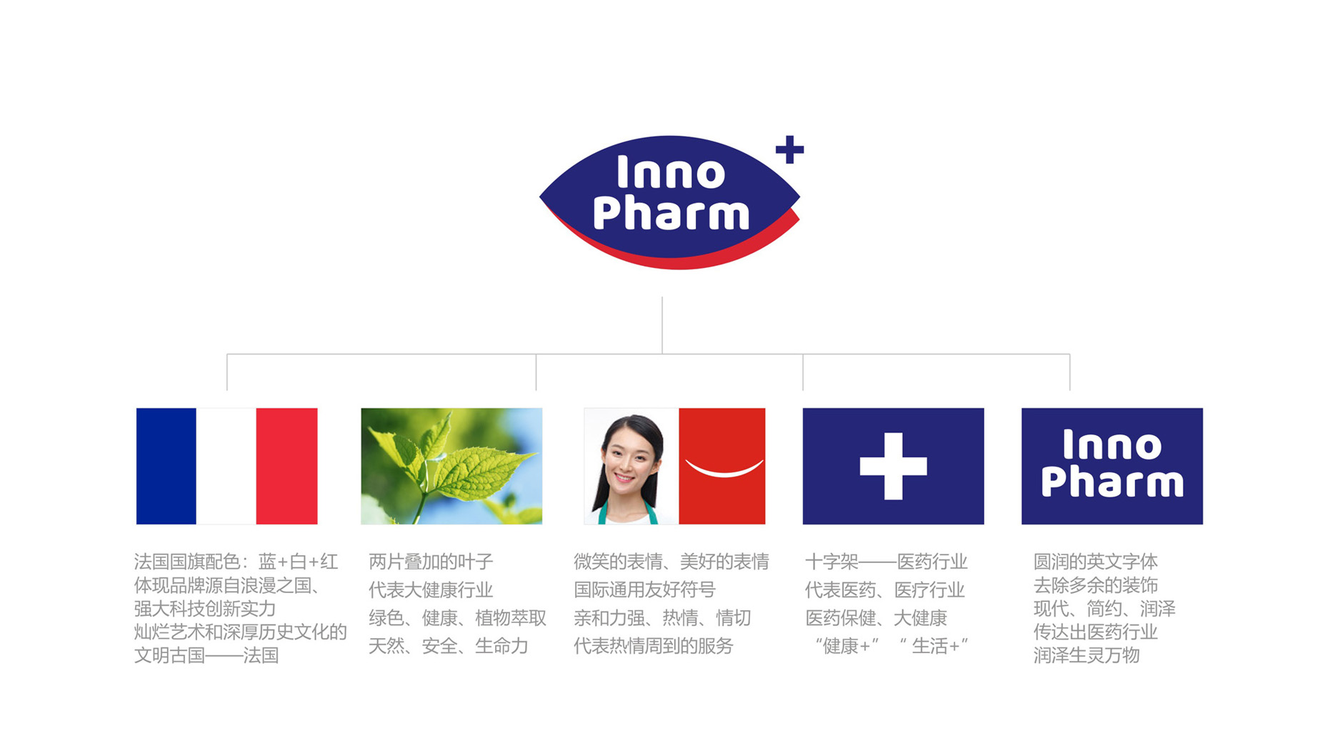 Innopharm是歐洲品牌,應展現國際化的品牌形象,現代、大氣、簡約,自身具有鮮明的視覺特征,形成品牌識別符號。行業(yè)屬性為醫(yī)藥行業(yè),應展現健康、陽光、創(chuàng)新理念,并且方便應用于包裝上。